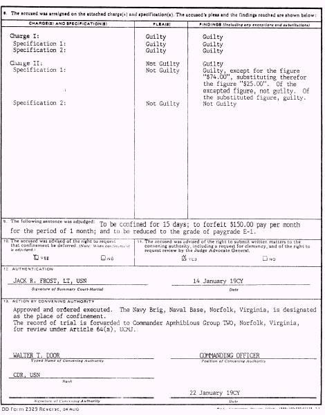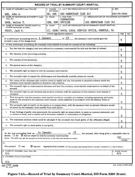 Figure 7-2B.-Record of Trial by Summary Court-Martial, DD Form 2329 (back).
