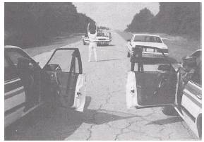 193.171 The driver will then be ordered to step sideways away from the vehicle and clear of the open door. The passenger maintains his or her position with hands still on the windshield. The driver will then be ordered to kick the door closed using the right foot. This will prevent anyone attempting to exit the vehicle without warning and also prevent the driver from attempting to get back into the vehicle.