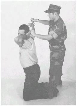 193.248 7. Grasp handcuffs with your left hand and search subject as you would in a standing position. |