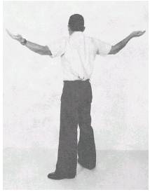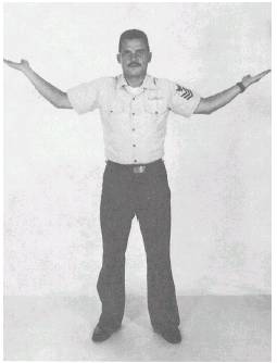 193.256 OPTION: AT THIS POINT YOU CAN HAVE THE SUBJECT CROSS HIS ANKLES, OR HAVE SUBJECT SPREAD HIS FEET APART AS FAR AS POSSIBLE. 4. Order subject to extend his arms to the side (90 degrees from his body), palms up. Order subject to turn his face opposite your approach.