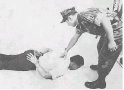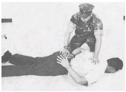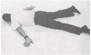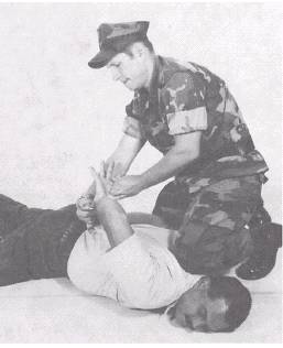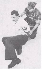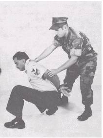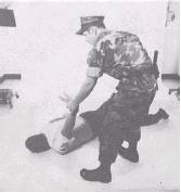 193.273 13. Place one hand on the back of the subject's head and far shoulder. Turn the subject so that he assumes a sitting position. Order the subject to tuck a foot into his groin area.