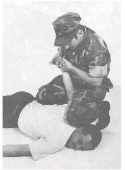 193.260 6. Lower your knees onto subject's back and nape of his neck (subject's arm should be between your legs, his hand should be in the center of your chest).