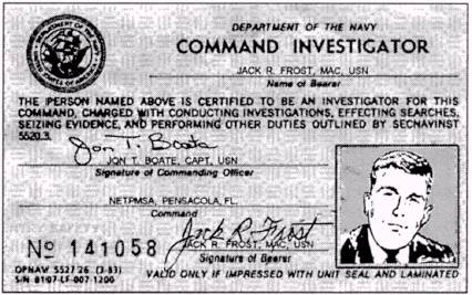 Figure 15-1.-Navy command investigator ID card. 15-4 Police information- Processed information relating to criminal activities, police law enforcement and security operations, and incidents that disrupt law and order. Criminal information- A category of police information applying to criminal activities, violation of criminal law, and crime prevention. Criminal information applies to acts of crime committed by individuals or organized criminal groups-crimes that affect the discipline, law, and order within the U.S. Navy. Operational information- A category of police information required for planning and executing police law enforcement and security operations. Source of information- Any person, object, or recorded data from which law enforcement personnel obtain information that may be of investigative assistance. Essential elements of criminal information (EECI)- Critics items of information pertaining to criminal activities and crime areas that, when related with other available information, provide the investigator or investigating agency the information for reaching conclusions and making decisions. Essential elements of criminal information provide guidelines for the collection of information to assure critical items of information are collected, processed, and disseminated to the appropriate user. Other criminal information requirements (OCIR)- Additional information requirements that are useful to the collection effort but not immediately essential. Criminal intelligence operations- Those formalized programs regarding significant criminal activity targeted against or directly involving Navy and Marine Corps personnel to gain information of a criminal intelligence nature for law enforcement purposes. RESPONSIBILITIES A high degree of specialized training and experience is mandatory to the successful accomplishment of criminal intelligence operations and, to the extent that they are undertaken within the Department of the Navy, the operations are done exclusively by the NCIS, regardless of location. Criminal intelligence operations are undertaken at NCIS initiative, in close coordination with senior command authority. During their course, these sensitive operations may cover wide geographic areas and extend across multiple command lines. All Department of Defense investigative records are indexed within the Defense Criminal Investigative Index (DCII). There are four major contributors to the DCII. These are the Army, Navy-Marine Corps, Air Force, and the DIS. The purpose of the DCII is to reveal past investigative activity involving any subject of an investigation. The NCIS is the contact point for command investigators requesting inquiries to the DCII. The local command investigators collect criminal information at the local level and may evaluate it for their own purposes, sharing it with other military agencies in the investigative effort. They must also develop sources of information, provide input to the criminal information system, and apply criminal information to investigations. CRIMINAL INFORMATION PROCESS The criminal information process is a continuous cycle of interrelated activities directed toward converting raw information into material useful for law enforcement purposes. Normally, the criminal information process described here is carried on in a large-scale operation. However, for MAs and command investigators, the process may be well-applied at a local level. There are six steps in the criminal operation process, as follows: 1. Planning and Collecting. Planning for collection of information is needed at all levels. Short-, medium-, and long-range requirements should be established. Priority areas of interest, expressed in the EECI and OCIR, are required due to resource limitations. They are not permanent, and the areas of interest will vary. Subordinate commands support the EECI and OCIR of higher commands and may establish their own priorities to meet local needs. The individual investigator is the key to a successful collection effort. During daily activities, the investigator should look for information as specified in EECI and OCIR. The collection effort is continuous and should be aggressively pursued to be effective. Though priority will be placed on EECI requirements, the collection of other useful criminal information must be emphasized. Available sources of information are unlimited as long as they are energetically used. Historically, the police have relied upon people and other agencies for information. Informants have always supplied an important part of the information received. 2. Evaluating Criminal Information. The evaluation of criminal information involves determining the reliability of the source and the accuracy and pertinency of the information. The individual investigator collecting the information is best able to judge the reliability of the source, particularly when it comes from informants. This determination is dependent upon past experience with the source. This evaluation of the information's accuracy and pertinency is best determined by the individual investigator and the local police operation. Information processed by higher levels is evaluated in relation to other known information and prevailing circumstances. Information corroborated with other sources will generally be evaluated as more accurate. 3. Analysis. Analysis of information is conducted at all levels of the criminal information collection activity. The best basis on which to conduct analysis is experience. Additionally, the information may be subjected to various types of analyses (such as statistical analysis, operations research, systems analysis, and computer analysis). Information is analyzed by itself before it is integrated with other information, to determine its value and to identify significant elements. It is then combined with other information. Analysis is the asking, "What significance does this information have? What does it mean?" 4. Collation. Collation i
