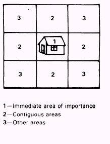Figure16-15.-Zone or sector searches. or a desk drawer that has been pried open would be processed after the remainder of the scene has been examined for traces of the offender. |