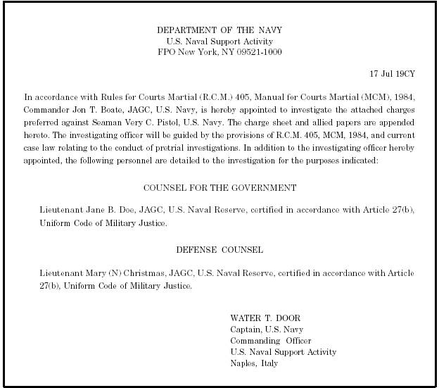Figure 5-2.-Sample Appointing Order for Article 32 Pretrial Investigation. |