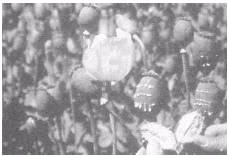 Figure 7-2.-The milky fluid from incisions in the unripe seedpod.
