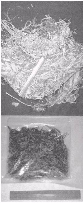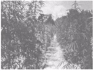 CANNABIS Cannabis sativa, the hemp plant, grows wild throughout most of the tropic and temperate regions of the world. It is a single species. This plant has long been cultivated for the tough fiber of the stem, the seed used in feed mixtures, the oil as an ingredient of paint, as well as for its biologically active substances, most highly concentrated in the leaves and resinous flowering tops. The plant material has been used as a drug for centuries. The plant and its derivatives (such as marijuana, hashish, and hashish oil) contain the active ingredient, delta-9-tetrahydrocannabinol (THC), one of 61 cannabinoids, which are chemicals unique to cannabis. Cannabis products are usually smoked in the form of loosely rolled cigarettes (joints). They may be used alone or in combination with other substances. They may also be administered orally, but are reported to be about three times more potent when smoked. The effects are felt within minutes, reach their peak in 10 to 30 minutes, and may linger for 2 or 3 hours. A condensed description of these effects is apt to be inadequate or even misleading; so much depends upon the experience and expectations of the individual as well as the activity of the drug itself. Low doses tend to induce restlessness and an increasing sense of well-being, followed by a dreamy state of relaxation and, frequently, hunger-especially a craving for sweets. Changes of sensory perception- a more vivid sense of sight, smell, touch, taste, and hearing-may be accompanied by subtle alterations in thought formation and expression. Stronger doses intensify these reactions. The individual may experience shifting sensory imagery, rapidly fluctuating emotions, and a flight of fragmentary thoughts with disturbed associations. It may also result in an altered sense of self-identity, impaired memory, and a dulling of attention despite an illusion of heightened insight. This state of intoxication may not be noticeable to an observer. High doses may result in image distortions, a loss of personal identity, and fantasies and hallucinations. Very high doses may result in a toxic psychosis. During recent years, there has been a resurgence in the scientific study of cannabis. One goal of the study has been to develop therapeutic agents that, if used as directed in medical treatment, will not produce harmful side effects. While THC can now be synthesized in the laboratory, it is a liquid insoluble in water, and it decomposes on exposure to air and light, so that it is difficult to prepare stable dosage units. Two of the most active areas of research are for the control of nausea and vomiting caused by chemotherapeutic agents used in the treatment of cancer and for decreasing intraocular pressure in the treatment of glaucoma. None of the synthetic cannabinoids have so far been detected in the drug traffic. Three types of drugs that come from cannabis are currently distributed on the U.S. illicit market- marijuana, hashish, and hashish oil. Having no currently accepted medical use in treatment in the United States, they remain under Schedule I of the FCSA. Marijuana The term marijuana (or marihuana) is used in this country to refer to the cannabis plant and to any part or extract of it that produces somatic or psychic changes in man. A tobaccolike substance, produced by drying the leaves and flowering tops of the plant, marijuana varies significantly in its potency, depending on the source and selectivity of plant materials used. Most wild U.S. cannabis is considered inferior because of a low concentration of THC, usually less than 0.5 percent. Jamaican, Colombian, and Mexican varieties range between 2.5 and 6.9 percent. The most selective product is reputed to be sinsemilla (Spanish, sin semilla: without seed). prepared from the unpollenated female cannabis plant, samples of which have been found to contain up to 8 percent THC. Southeast Asian "Thai sticks," consisting of marijuana buds bound onto short sections of bamboo, are also encountered infrequently on the U.S. illicit market. See figures 7-20 through 726.