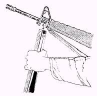 Figure 8-17.-Attaching the clothespin bipod to the M16A1rifle.