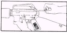Loading the Rifle With the weapon cocked, place the selector lever on SAFE. The magazine may be inserted with the bolt either open or closed; however, you should learn to load with the bolt open. This reduces the possibility of a