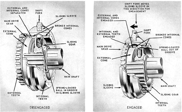 Figure 13-9.-Synchromesh clutch-disengaged and engaged.