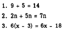 Notice that equation 3 merely shows the factored form of 6x - 18 and holds true when any value of x is substituted. For example, if x = 5, it becomes