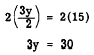 2. Since the 2 will not divide the 3 exactly, multiply the left member by 2 in order to eliminate the fraction. This operation must be balanced by multiplying the right member by 2, as follows :