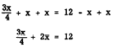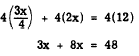 2. Since the 4 will not divide the 3 exactly, it is necessary to multiply the first term by 4 to eliminate the fraction. However, notice that this multiplication cannot be performed on the first term only; any multiplier which is introduced for simplification purposes must be applied to the entire equation. Thus each term in the equation is multiplied by 4, as follows: