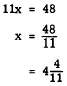 3. Add the terms containing x and then divide both sides by 11 to isolate the x in the left member, as follows:
