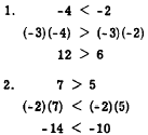 Sense Reversal If both sides of an inequation are multiplied or divided by the same negative number, the sense of the resulting inequation is reversed. This is illustrated as follows: