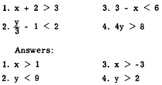 INEQUALITIES Modern mathematical thought gives considerable emphasis to the concept of inequality. A meaningful comparison between two quantities can be set up if they are related in some way, even though the relationship may not be one of equality.The expression "number sentence" is often used to describe a general relationship which may be either an equality or an inequality. If the number sentence states an equality, it is an EQUATION; if it states an inequality, it is an INEQUATION.ORDER PROPERTIES OF REAL NUMBERSThe idea of order, or relative rank accord ing to size, is based upon two intuitive concepts: "greater than" and less than." Mathematicians use the symbol > to represent "greater than" and the symbol < to represent less than." For example, the inequation stating that 7 is greater than 5 is written in symbols as follows:7 > 5 The inequation stating that x is less than 10 is written as follows:x < 10 A "solution" of an inequation involving a variable is any number which may be substi right member. For example, the inequation x < 10 has many solutions. All negative numbers zero, and all positive numbers less than 10, may be substituted for x successfully. These solutions comprise a set of numbers, called the SOLUTION SET.The SENSE of an inequality refers to the direction in which the inequality symbol points. For example, the following two inequalities have opposite sense: 7 > 5 PROPERTIES OF INEQUALITIES Inequations may be manipulated in accordance with specific operational rules, in a manner similar to that used with equations. Addition The rule for addition is as follows: If the same quantity is added to both members of an inequation, the result is an inequation having the same sense as the original inequation. The following examples illustrate this: