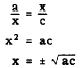 x is the mean proportional between a and c. Rule 2. The mean proportional between two quantities is the square root of their product. This rule is stated algebraically as follows: