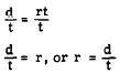 In words, this formula states that rate equals distance divided by time. Likewise, in solving for t, we have the following :