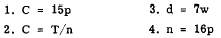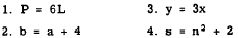 Formulas can be solved for an unknown by substituting directly in the original formula even though that unknown is not the subject. Generally, however, it is simpler to first make the unknown the subject.Formulas vary widely, from the simple type such as we have been considering to some that are very complex. All formulas have certain characteristics in common. There is always a subject, the quantity whose value is sought as a final answer. This subject usually stands alone, being placed equal to at least one and possibly several literal numbers, which are combined according to certain indicated operations. The formula can always be evaluated for a specific case when numerical values are known for all these literal quantities.Evaluating formulas may be facilitated by developing a routine order of doing the work. If someone else can read the work and clearly understand what has been done, the work is in good order. The original formula should be written first, then the derived formula that is going to be used in solving the problem, and finally the actual substitutions. The indicated operations may then be carried out. Care should be taken to label answers with correct units; that is, miles per hour, foot-pounds, square feet, etc.Practice problems. 1. E = IR Solve for R in ohms if E is 110 volts and I is 5 amperes.2. d = rt. Solve for t in hours if d is 840 nautical miles and r is 25 knots. 3. Answers: 1. 22 ohms DEVELOPING FORMULAS Developing a formula from a verbal statement is nothing more than reducing the statement to a shorthand form and showing the mathematical relationships between the elements of the statement.For example, suppose that we wish to develop a formula showing the distance, D, traveled at the rate of 20 knots for t hours. If the distance traveled in 1 hr is 20 nautical miles, then the distance traveled in t hours is 20t.Therefore, the formula is D = 20t Practice problems. 1. Write a formula for the cost, C of p pounds of sugar at 15 cents per pound.2. Write the formula for the cost, C, of one article when the total cost, T, of n similar articles is known.3. Write a formula for the number of days, d, in w weeks.4. Write a formula for the number of ounces, n, in p pounds.Answers: