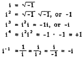 In figure 15-5, notice that the idea of i as an operator agrees with the concept advanced concerning the powers of i. Thus, i rotates a number through 90; 1 2 or -1 rotates the number through 180, and the number is real and negative; i3 rotates the number through 270, which has the same effect as -i; and i4 rotates the number through 360, and the number is once again positive and real. |
