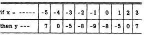 GRAPHICAL SOLUTION A fourth method of solving a quadratic equation is by means of graphing. In graphing linear equations using both axes as reference, we recall that an independent variable, x, and a dependent variable, y, were needed. The coordinates of points on the graph of the equation were designated (x, y).Since the quadratics we are considering contain only one variable, as in the equation x2 - 8x + 12 = 0 we cannot plot values for the equations in the present form using both x and y axes. A dependent variable, y, is necessary.If we think of the expression x2 - 8x + 12 as a function, then this function can be considered to have many possible numerical values, depending on what value we assign to x. The particular value or values of x which cause the value of the function to be 0 are solutions for the equationx2 - 8x + 12 = 0 For convenience, we may choose to let y represent the functionX2 - 8x + 12 If numerical values are now assigned to x, the corresponding values of y may be calculated. When these pairs of corresponding values of x and y are tabulated, the resulting table provides the information necessary for plotting a graph of the function.EXAMPLE: Graph the equation x2 + 2x - 8 = 0 and from the graph write the roots of the equation. SOLUTION: 1. Let y = x2 + 2x - 8. 2. Make a table of the y values corresponding to the value assigned x, as shown in table 16-1.Table 16-1.-Tabulation of x and y values for the function y = x2 + 2x - 8.
