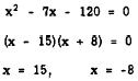 Therefore Thus, length = +15 or -8.But the length obviously cannot be a negative value. Therefore, we reject -8 as a value, for x and use only the positive value, +15. Then from equation (1).