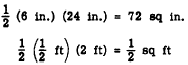 CAUTION: The concept of area is meaningless if the units of the multiplied dimensions are not the same. For example, if the base of a triangle is 2 feet long and the altitude is 6 inches long, the area might be carelessly stated as 1/2 (6) (2). However, the units must be considered in order to decide whether the answer is in square feet or square inches. When the units are considered, we realize that the correct answer is