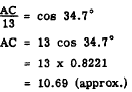 TABLES Tables of decimal values for the trigonometric ratios may be constructed in a variety of ways. Some give the angles in degrees, minutes, and seconds; others in degrees and tenths of a degree. The latter method is more compact and is the method used for appendix II. The "headings" at the bottom of each page in appendix II provide a convenient reference showing the minute equivalents for the decimal fractions of a degree. For example, 12 (12 minutes) is the equivalent of 0.2.Finding the Function Value The trigonometric ratios are sometimes called FUNCTIONS, because the value of the ratio depends upon (is a function of) the angle size. Finding the function value in appendix II is easily accomplished. For example, the sine 35 is found by looking in the "sin" row opposite the large number 35, which is located in the extreme left-hand column.Since our angle in this example is exactly 35, we look for the decimal value of -the sine in the column with the 0.0 heading. This column contains decimal values for functions of the angle plus 0.0; in our example, 35 plus 0.0, or simply 35.0. Thus we find that the sine of 35.0 is 0.5736. By the same reasoning, the sine of 42.7 is 0.6782, and the tangent of 32.3 is 0.6322.A typical problem in trigonometry is to find the value of an unknown side in a right triangle when only one side and one acute angle are known. EXAMPLE: In triangle ABC (fig. 19-8), find the length of AC if AB is 13 units long and angle CAB is 34.7.