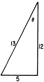 Figure 19-9.-Using trigonometric ratios to evaluate angles.a right triangle, The only information given, concerning angle q, is the ratio of sides in the triangle. The size of q is calculated as follows: