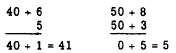 When we carry the 10 from the expression 10 + 4 to the tens column and place it with the 110 to make 120, the result is the same as if we had added 1 to the digits 5, 4, and 2 in the tens column of the original problem. Therefore, the thought process in addition is as follows: Add the 7, 5, and 2 in the units column, getting a sum of 14. Write down the 4 in the units column of the answer and carry the 1 to the tens column. Mentally add the 1 along with the other digits in the tens column, getting a sum of 12. Write down the 2 in the tens column of the answer and carry the 1 to the hundreds column. Mentally add the 1 along with the other digits in the hundreds column, getting a sum of 12. Write down the 2 in the hundreds column of the answer and carry the 1 to the thousands column. If there were other digits in the thou- sands column to which the 1 could be added, the process would continue as before. Since there are no digits in the thousands column of the original problem, this final 1 is not added to anything, but is simply written in the thousands place in the answer.The borrow process is the reverse of carrying and is used in subtraction. Borrowing is not necessary in such problems as 46 - 5 and 58 - 53. In the first problem, the thought process may be "5 from 6 is 1 and bring down the 4 to get the difference, 41." In the second problem, the thought process is "3 from 8 is 5" and "5 from 5 is zero," and the answer is 5. More explicitly, the subtraction process in these examples is as follows: