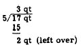 Step 2: Convert the 4 gal left over to 16 qt and add to the 1 qt. Step 3: Step 4: Convert the 2 qt left over to 4 pt and add to the 1 pt. Step 5: Therefore, 24 gal 1 qt 1 pt. Divided by 5 is 4 gaI. 3 qt 1 pt. Practice problem. In problem8 1 through 4, divide as indicated. In problems 5 through 8, multiply or divide as indicated.