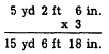 DENOMINATE NUMBERS We have learned that denominate numbers are not difficult to add and subtract, provided that units, tens, hundreds, etc., are retained in their respective columns. Multiplication and division of denominate numbers may also be performed with comparative ease, by using the experience gained in addition and subtraction. Multiplication In multiplying denominate numbers by integers, no new ideas are needed. If in the problem 3(5 yd 2 ft 6 in.) we remember that we can multiply each part separately to get the correct product (as in the example, 6(8) = 6(3) + 6(5)), we can easily find the product, as follows: