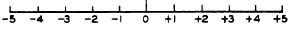 Figure 3-3.-Number line showing both positive and negative numbers.Place zero at the middle of the line. Let the positive numbers extend from zero toward the right. Let the negative numbers extend from zero toward the left. With this arrangement, positive and negative numbers are so located that they progress from smaller to larger numbers as we move from left to right along the line. Any number that lies to the right of a given number is greater than the given number. A number that lies to the left of a given number is less than the given number. This arrangement shows that any negative number is smaller than any positive number. The symbol for "greater than" is >. The symbol for "less than" is <. It is easy to distinguish between these symbols because the symbol used always opens toward the larger number. For example, "7 is greater than 4" can be written 7 > 4 and "-5 is less than -1" can be written -5 < -1. Absolute Value The ABSOLUTE VALUE of a number is its numerical value when the sign is dropped. The absolute value of either +5 or -5 is 5. Thus, two numbers that differ only in sign have the same absolute value. The symbol for absolute value consists of two vertical bars placed one on each side of the number, as in |-5| = 5. Consider also the following: |4 - 20|= 16 |+7| = |-7| = 7 The expression |-7| is read "absolute value of minus seven." When positive and negative numbers are used to indicate direction of measurement, we are concerned only with absolute value, if we wish to know only the distance covered. For example, in figure 3-2, if an object moves to the left from the starting point to the point indicated by -2, the actual distance covered is 2 units. We are concerned only with the fact that |-2| = 2, if our only interest is in the distance and not the direction. |