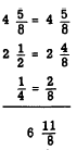 EXAMPLE: Add Since 11/8 equals 1 3/8, the final answer is found as follows:
