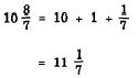 Here we change 8/7 to the mixed number 1 1/7. Then