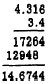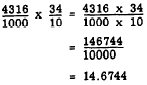 The placing of the decimal point is reasonable, since 4 tenths of.37 hundredths is a little less than half of 37 hundredths, or about 15 hundredths. Consider the following example: 4.316 x 3.4 In the common fraction form, we have