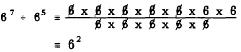Cancellation of the five 6s in the divisor with five of the 6s in the dividend leaves only two 6s, the product of which is 62.This result can be reached directly by noting that 62 is equivalent to 6(7 - 5). In other words, we have the following: