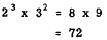 It is important to realize that the base must be the same for each factor, in order to apply the laws of exponents. For example, 23 x 32 is neither 25 nor 35. There is no way to apply the law of exponents to a problem of this kind. Another common mistake is to multiply the bases together. For example, this kind of error in the foregoing problem would imply that 23 x 32 is equivalent to 65, or 7776. The error of this may-be proved as follows: