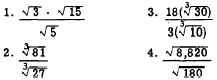 Practice problems. Simplify the radicals and reduce to lowest terms: