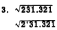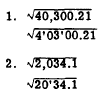 SQUARE ROOTS Taking the square root of a number with the slide rule is the inverse process of squaring a number. We find the number on the A scale, set the hairline of the indicator over it, and read the square root on the D scale under the hairline.Positioning Numbers on the A Scale Since there are two parts of the A scale exactly alike and the digit sequence could be found on either part, a question arises as to which section to use. Generally, we think of the left half of the rule as being numbered from 1 to 10 and the right half as being numbered from 10 to 100. The numbering continues- left half 100 to 1,000, right half 1,000 to 10,000, and so forth.A simple process provides a check of the location of the number from which the root is to be taken. For whole or mixed numbers, begin at the decimal point of the number and mark off the digits to the left (including end zeros) in groups of two. This is illustrated in the following two examples: