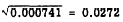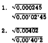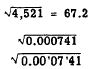 left of the decimal point in the root. Thus, (First figure is zero in this group) Place the hairline over 741 on the left half of the A scale. Read the digit sequence of the root, 272, under the hairline on the D scale. Since there is one pair of zeros to the left of the group containing the first digit, there is one zero between the decimal point and the first significant digit of the root. Thus,