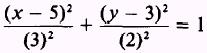 an ellipse with the center at (5,3); its semimajor axis, a, equal to 3; and its