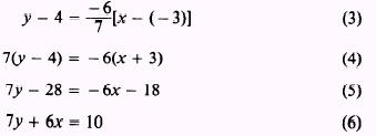 Using (4, - 2) as the known point will also give 7y + 6x =
