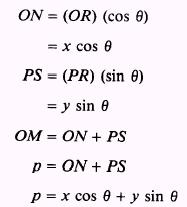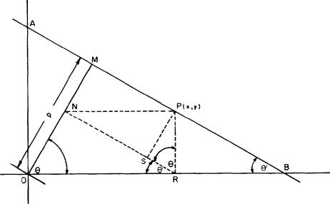 figure 1-9, line AB is a distance p away from the origin, and line OM forms an