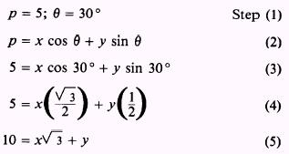 between 0' and 360'. EXAMPLE: Find the equation of the line that is 5 units away from the origin, if