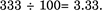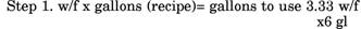 Then multiply the quantity of each ingredient by the working factor. You will round off to the nearest 1/4 teaspoon. For example, the recipe calls for 6 gallons of water per 100 portions. Portions to prepare are 333.