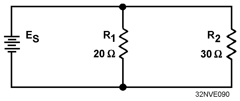 Figure 3-47. - Parallel circuit with two unequal resistors.