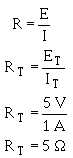 This computation shows the total resistance to be 5 ohms; one-half the value of either of the two resistors.