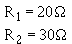 Example. What is the equivalent resistance of a 20-ohm and a 30-ohm resistor connected in parallel, as in figure 3-47?