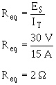 If you apply the general formula to the circuit shown in figure 3-45 you will get the same value for equivalent resistance (2Ω) as was obtained in the previous calculation that used source voltage and total current.